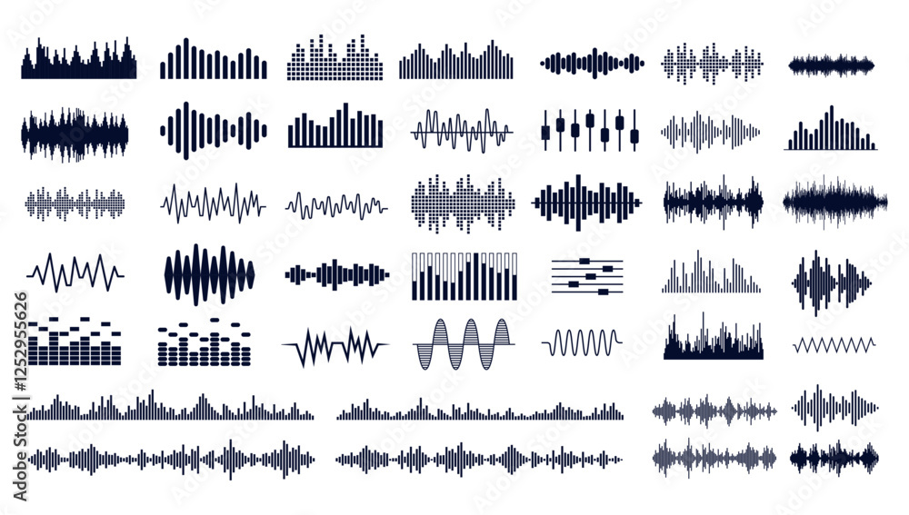 Foto Black sound waves on white background - Music wave frequency or equaliser audio
