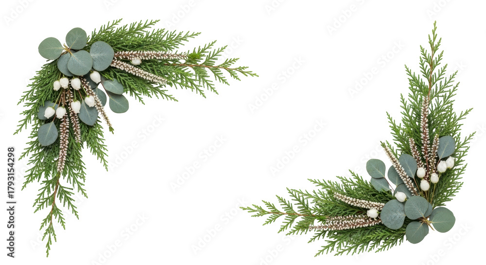 Foto Isolated festive sprigs of greenery with eucalyptus leaves and small flowers, ho