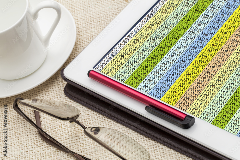 Foto data spreadsheet on digital tablet