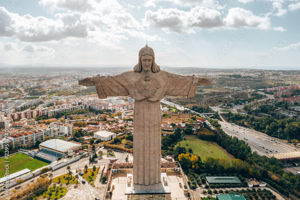 Fototapete Aerial view of the statue of Cristo-Rei in Lisbon
