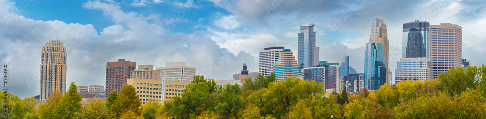Fototapete Autumn Downtown Minneapolis, MN Panorama View