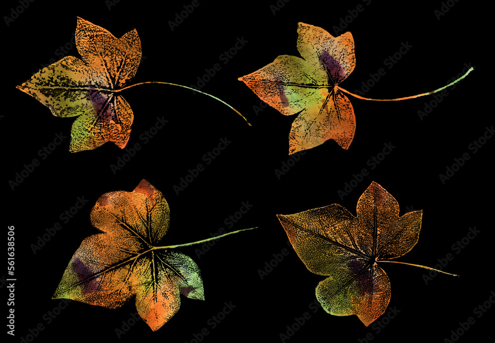Fototapete texture of leaf imprint on paper, stamp from leaf texture on a white background