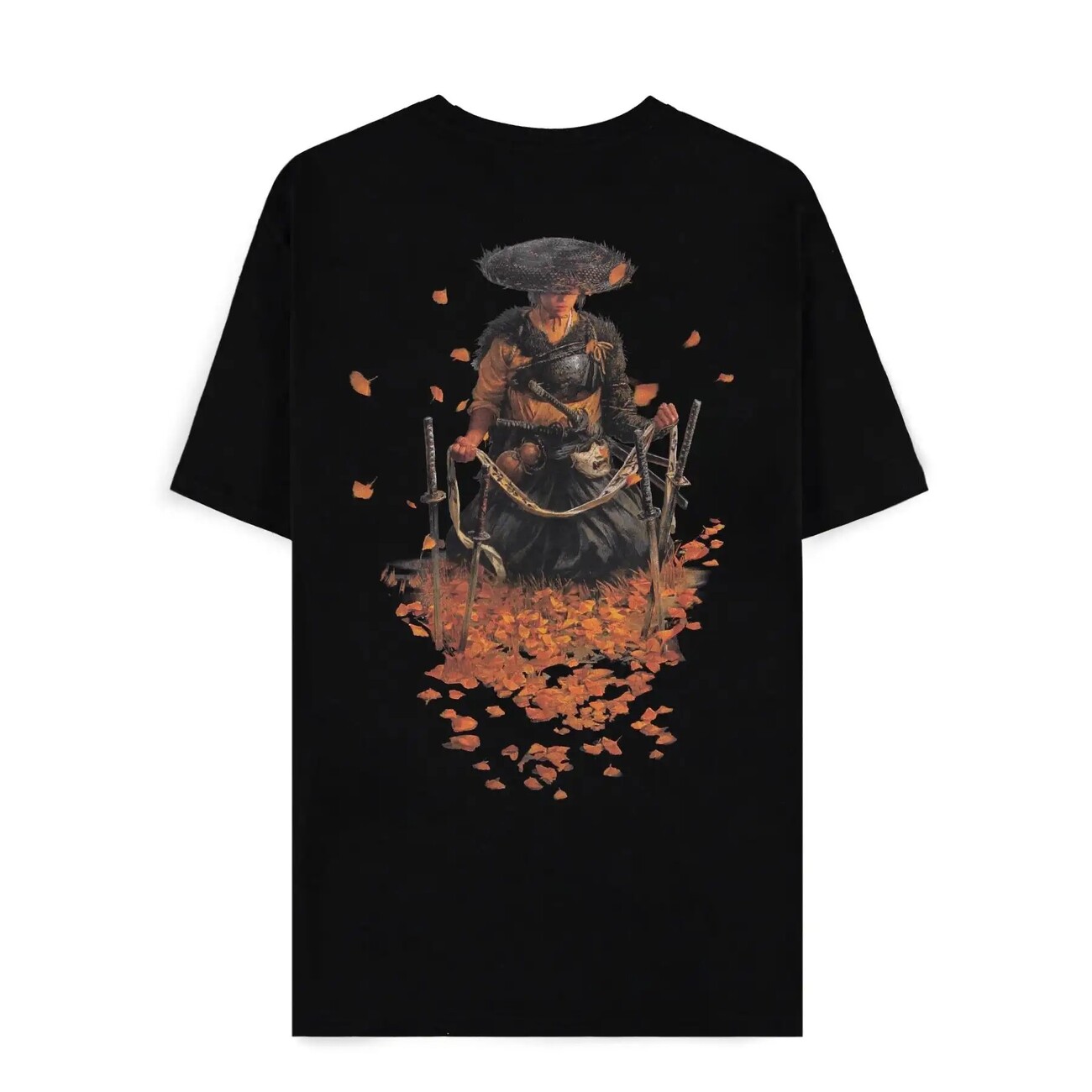 Offizielles schwarzes Ghost of Yōtei-Shirt mit dezentem Frontlogo und großem, dramatischem Rückenprint über die volle Fläche. 100 % Baumwolle für angenehmes Tragegefühl, klassischer Schnitt für Komfort den ganzen Tag. Ein zeitloses Essential mit klarem Verweis auf deine Lieblingswelt.