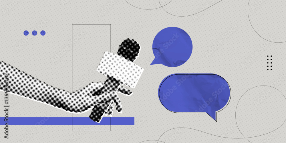 Bild auf Leinwand Trendy Halftone Collage Online Broadcasting concept