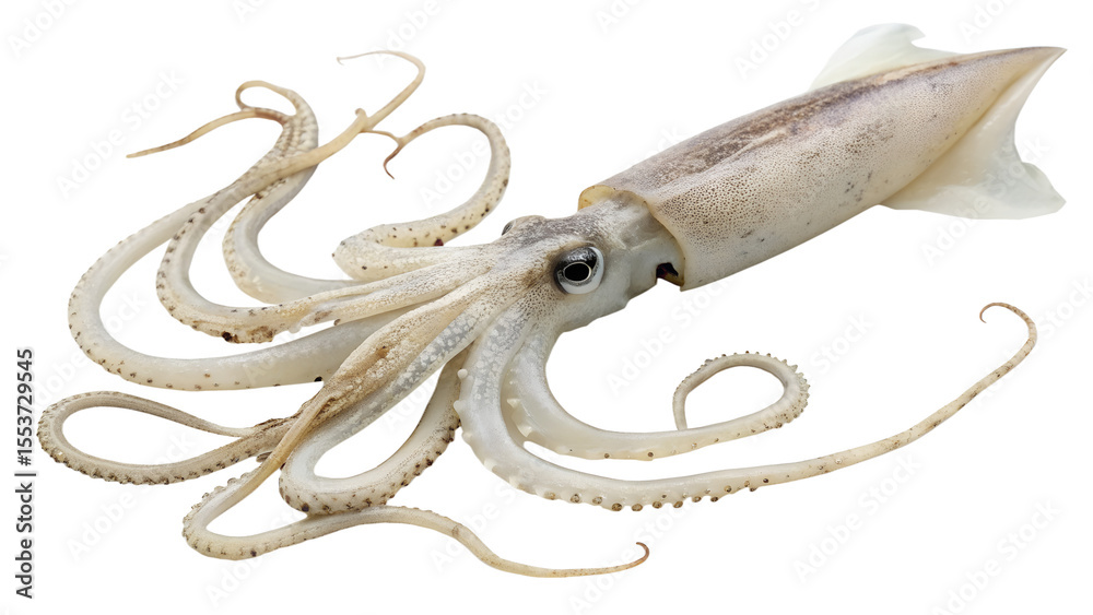 Bild auf Leinwand A detailed view of a squid with elongated body and long tentacles