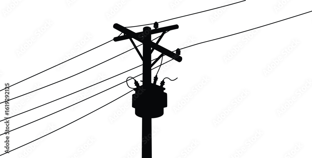 Bild auf Leinwand Silhouette of utility electric pole, vector power lines illustration, black tran