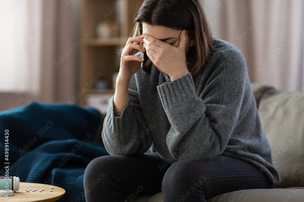 Bild auf Leinwand mental health, psychological help and depression concept - stressed woman with s