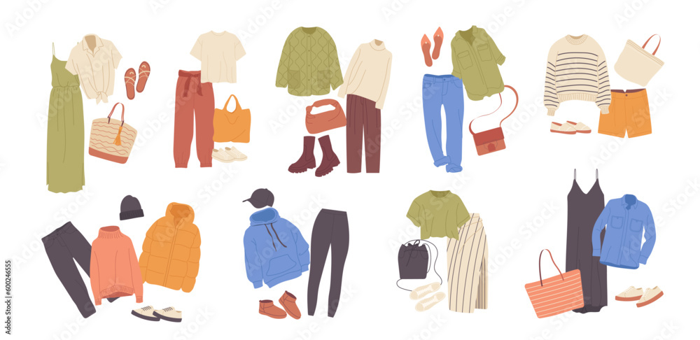 Bild auf Leinwand Set of isolated different seasonal clothing dress-up combinations in casual styl