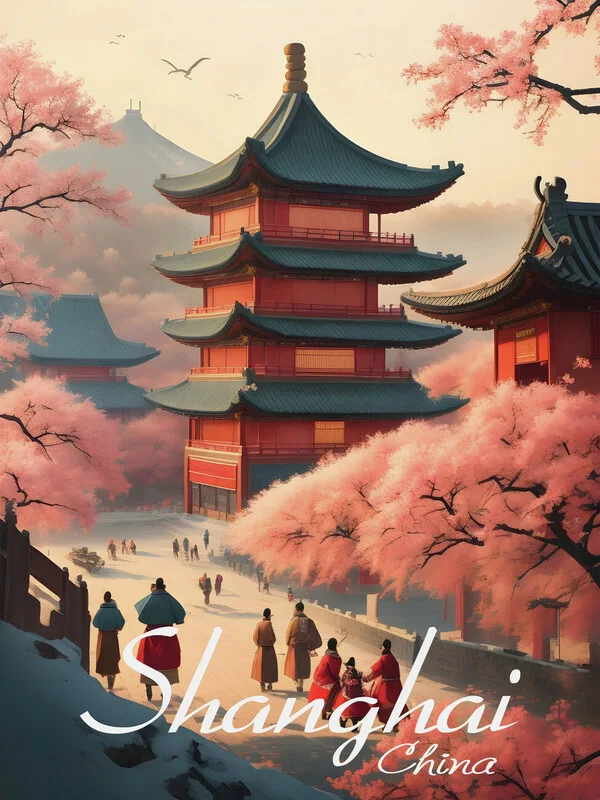 Bild auf Leinwand Shanghai Traditional Building Travel Poster